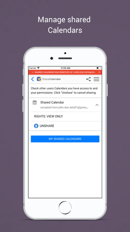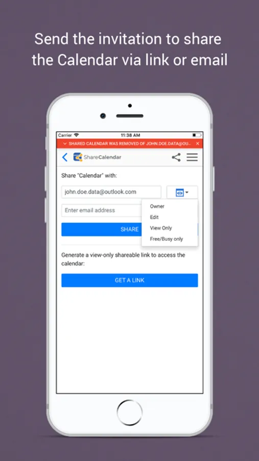 • Share calendar with “View only” and “Free/Busy only” rights using the Free version of app