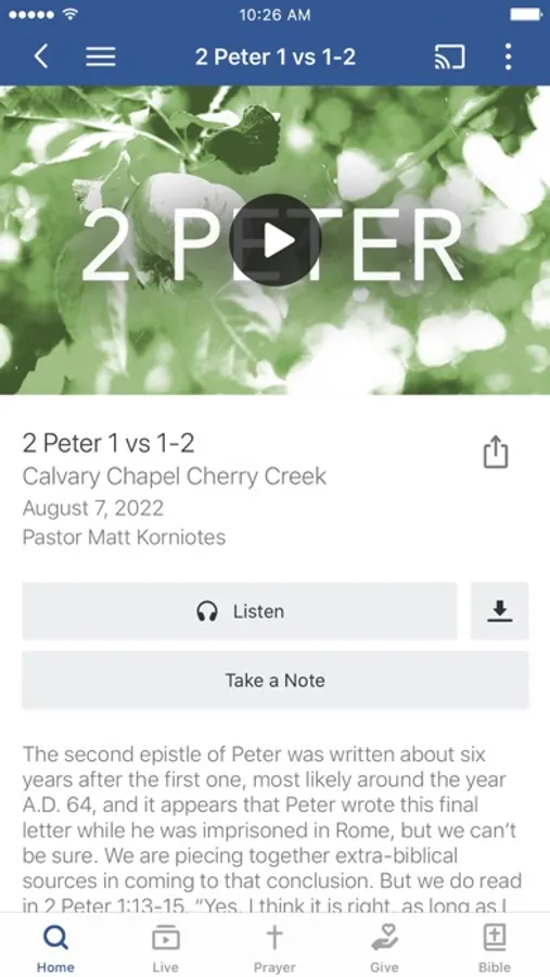 The Calvary Chapel Cherry Creek app is free and provides easy access to live and archived content from Sr. Pastor Matt Korniotes as well as our other pastors and church leaders. It will help you grow in your relationship with the Lord as you dig into His Word through sermons, Bible study resources, and our blog. It also provides a list of current events, so you can get plugged into our fellowship of believers as well as give to the Lord's work through C4 with turn-key online giving tools. We pray it blesses you richly!