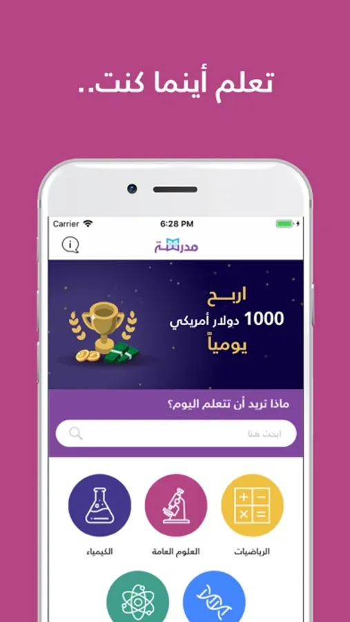 تضم المنصة التعليمية الرائدة من نوعها عربياً 5000 درس تعليمي بالفيديو، متاحة مجاناً لملايين الطلبة العرب، تشمل مواد الفيزياء والكيمياء والأحياء والرياضيات والعلوم العامة، تم تعريبها بالاستناد إلى أحدث المناهج العالمية، حيث تغطّي مختلف المناهج الدراسية من رياض الأطفال وحتى الصفّ الثاني عشر. وإلى جانب الفيديوهات التعليمية، تضمّ منصة مدرسة تمرينات وتطبيقات في مختلف .المواد العلمية، بما يرفد العملية التعليمية في إطار تكاملي، إلى جانب مسابقات تحفيزية