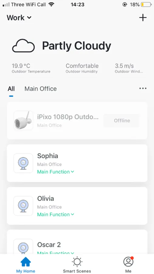 Olivia sees and hears everything. You’ll know when anything moves wherever Olivia is. You can move Olivia sideways and up and down using Clan so she can view the whole room and she can work with other members of the Clan Oscar and Sophia to monitor the whole house when you’re not there.