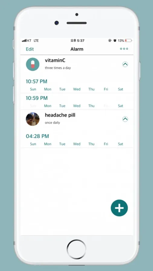 You can receive notifications at any time by specifying pictures, names, dosage, times, days.