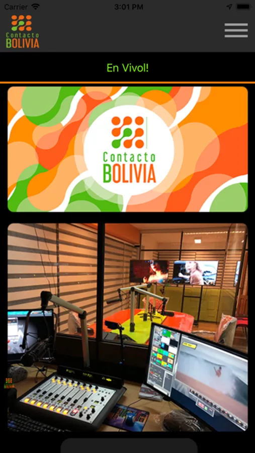 Contacto Bolivia es un medio digital en vivo transmitimos por internet, redes sociales y aplicaciones, estamos al alcance de tus manos, puedes seguirnos desde cualquier dispositivo, para que donde vayas tengas un contenido variado. Tenemos toda la actualidad y entretenimiento, con noticias, entrevistas y música Nuestra tecnología no tiene límites y nos permite llegar con calidad al país y al mundo con programas variados. Queremos estar comunicados contigo, porque el futuro es hoy.