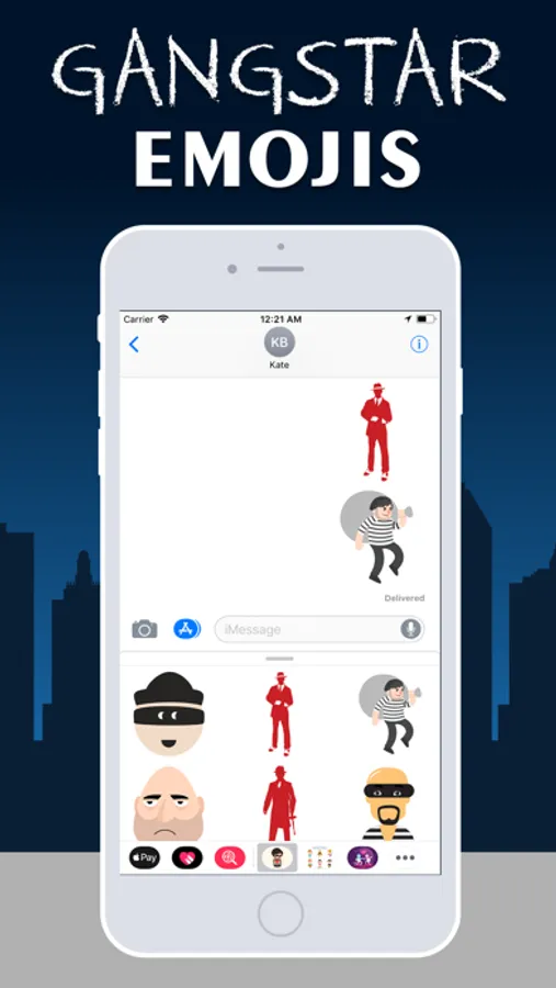 • Tap the icon on the lower left corner and then the plus icon to access the App Store for iMessage. Tap Manage tab and find Gangster Stickers to add it.