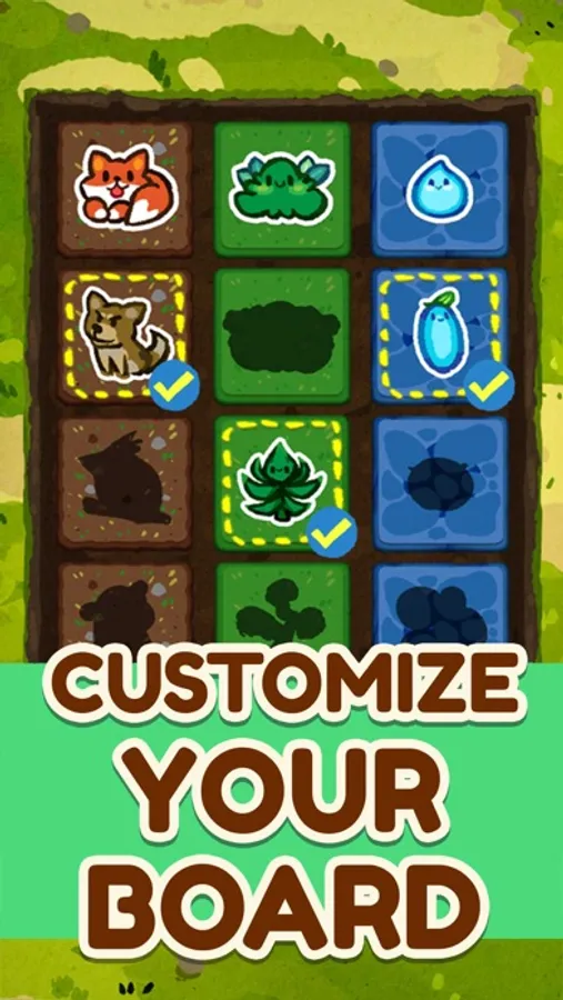 An adventure filled with forest friends awaits! Swipe left, right, up, and down to move rows and columns. Combine groups of resources of 3 or more. TAP to upgrade resources in a tile combining style! Groups of 3 tiles will merge and become 1 tile on the next level. Continually upgrade your resources and watch your forest family THRIVE! Match and merge more than 3 tiles for a higher score.