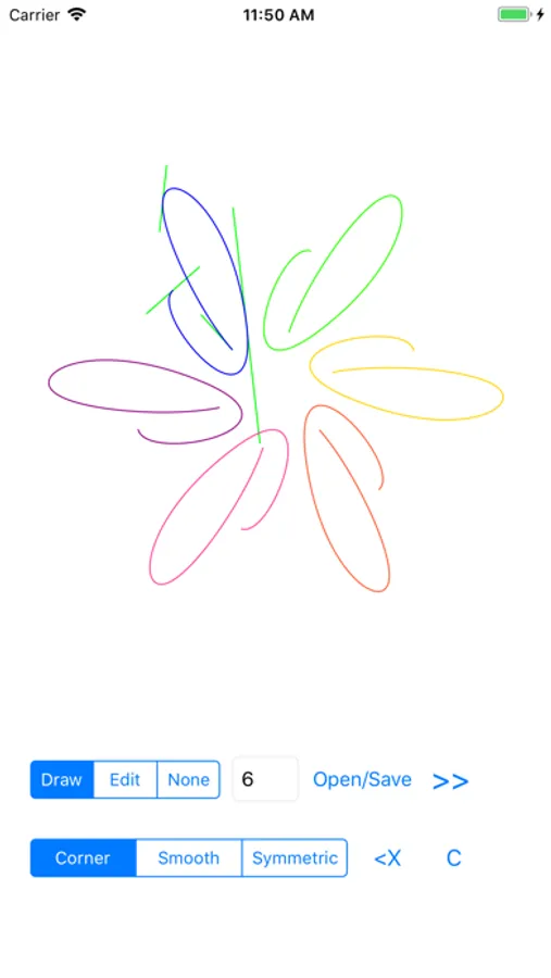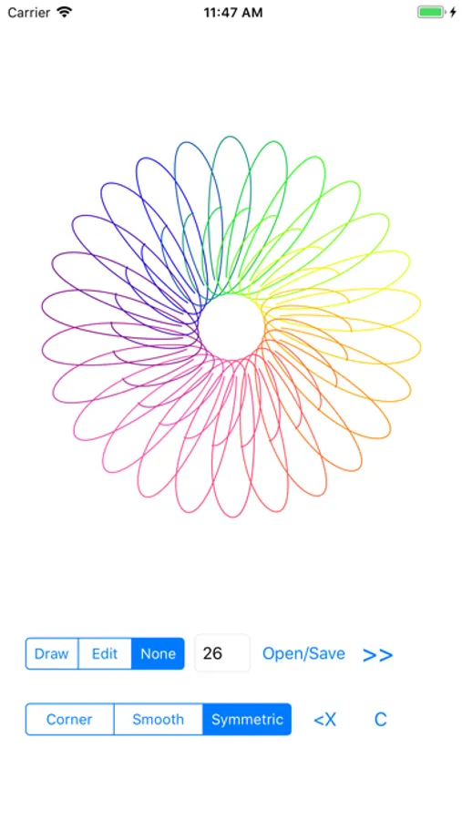 Doodle up complicated patterns from simple curves that you can go back and edit, or save as copies. Create new sequences of color gradients that apply to each rotated version of the curve. Drag out a smooth bezier curve with the pen tool and you can edit as you go. Explore how simple shapes create complicated patterns. Curves and gradient color sequences can be saved as named files and reopened for editing. Become familiar with Bezier parametric cubic curve drawing as used in popular vector drawing programs and try out the options to edit point types and handles.