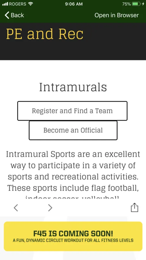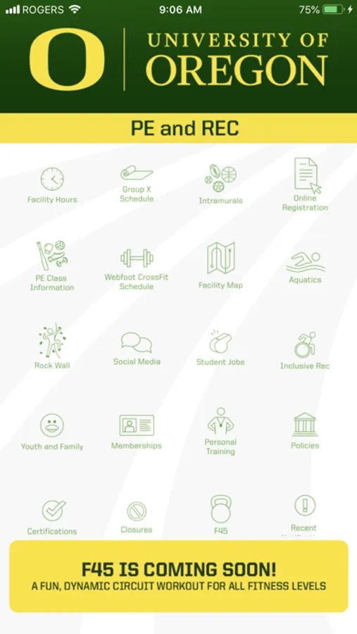 This is the official app for the University of Oregon Physical Education and Recreation Department. Stay up to date with the latest news and announcements for all of your favorite PE & Rec programs. Through the app you may register for programs, view up to the minute schedules, and receive important notifications to stay connected with all the action!