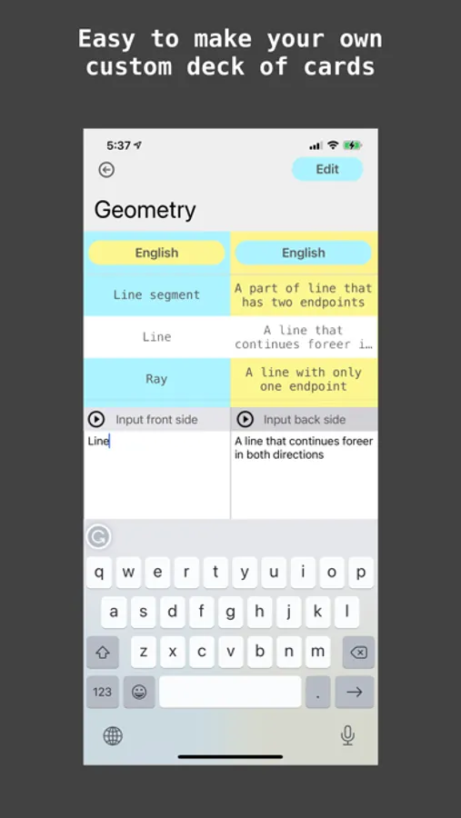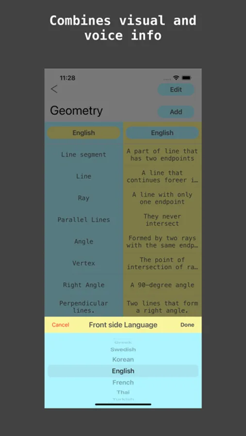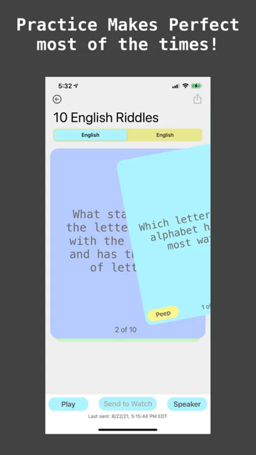 Multilingual Support: Choose languages for each side of a card. Listen to the app read out questions and answers – a flawless companion for eyes-free learning.