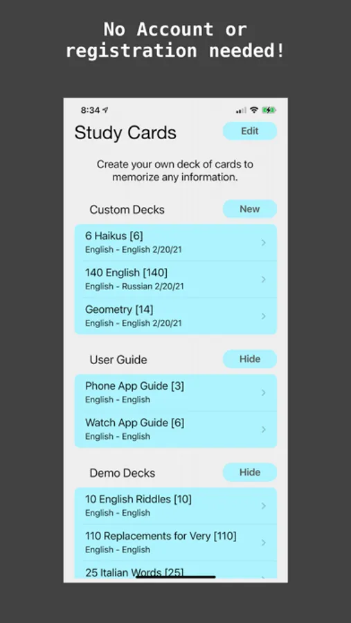 StudyCards: Experience the next level of learning with our interactive talking flashcards. They mimic the feel of actual paper cards and sticky notes, yet magically transform text into lifelike voices using Apple's native text-to-speech feature.