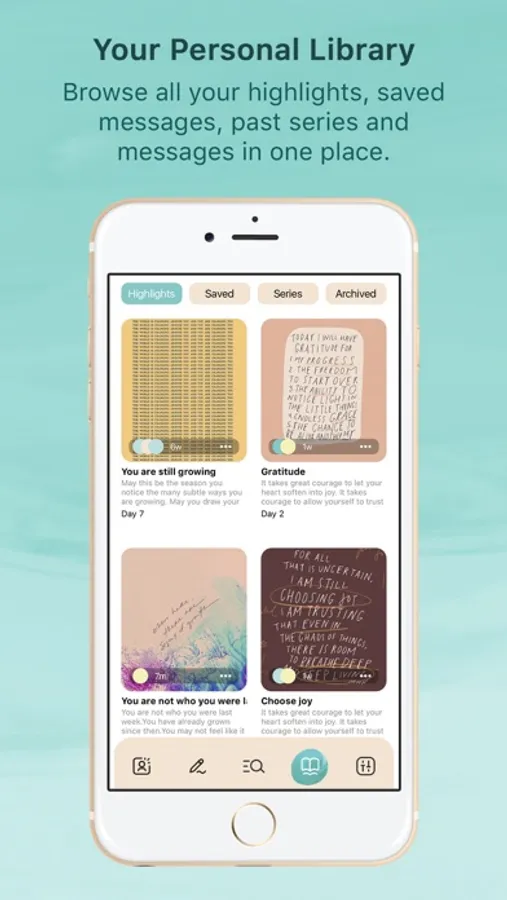 ○ Easily browse your highlights, journal entries, saved messages and more.