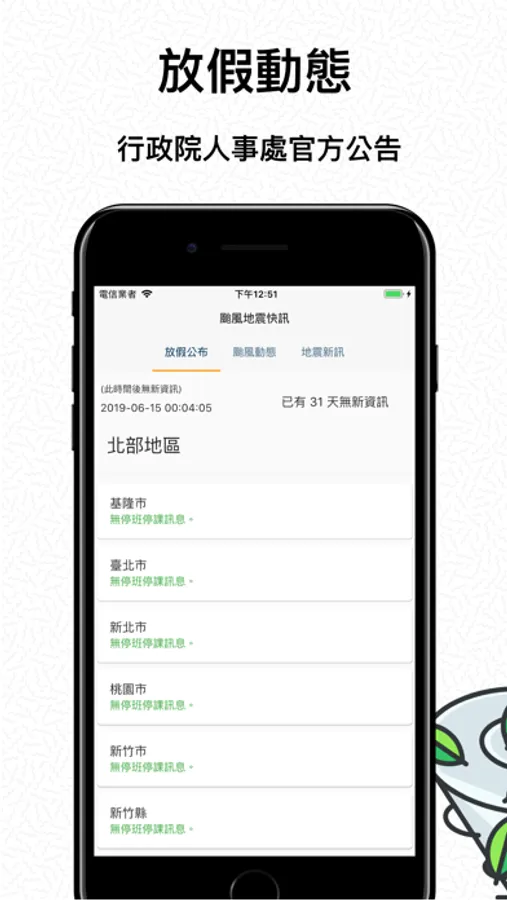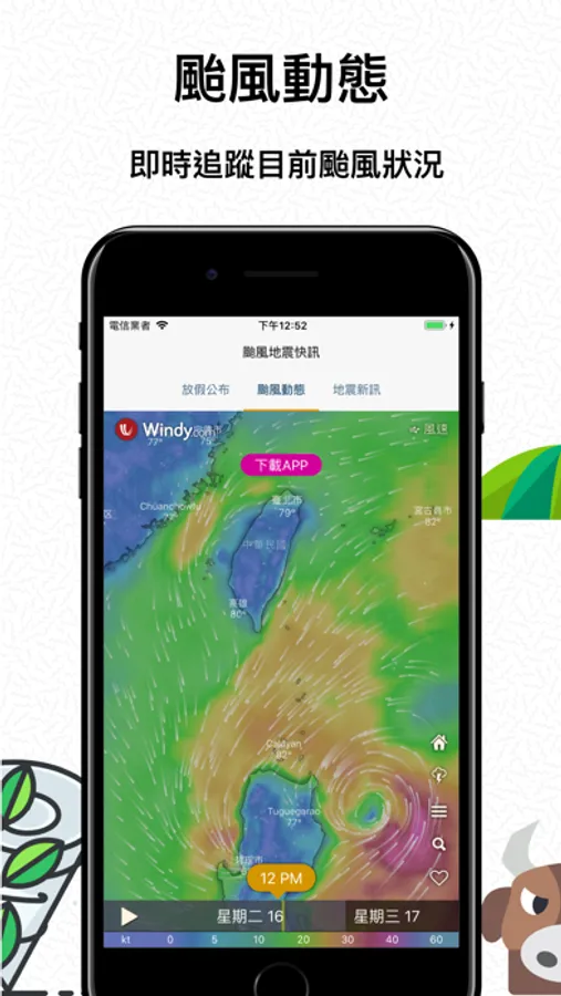 現在下載此款輕量玲瓏的 app,起床後一秒得知各縣市最新資訊,還可觀測目前颱風動態,不用再擔心颱風天跑出門上班上課。