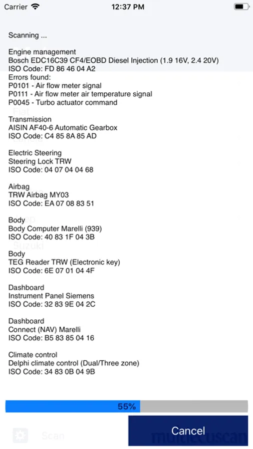 Multiecuscan is a dealer level diagnostic tool for most models of Fiat, Alfa Romeo and Lancia vehicles and also covers some models of Jeep, Chrysler, Dodge and Suzuki. We also have support for some Ducati bike models. Please visit our web site for a full list of covered models.