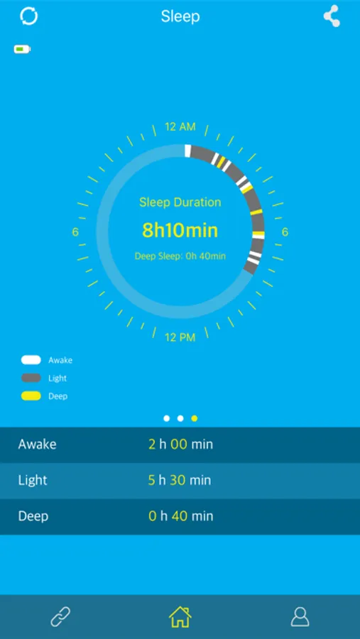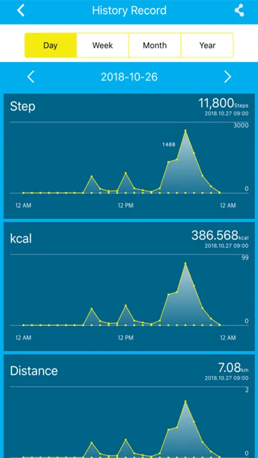 * Detailed graph of activity, which shows the step count history for a week, month & year. Displays the same for sleep monitoring; it shows the hours of total sleep, deep sleep & light sleep.