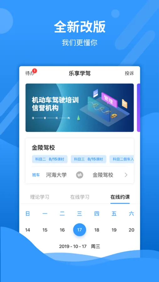 乐享学驾app是中寰卫星导航通信有限公司联合运管、南京各大驾校联合打造南京驾培行业服务品牌,进一步促进市场的公平公正、管理服务高效便捷,满足人民群众对培训质量、学驾体验度日益增强的美好学驾需求。乐享学驾随时为学员提供最新学车动态,同时产品为学员提供模拟考试、驾校展示、网上约课、学车指南等功能,为学员提供全方面的服务。