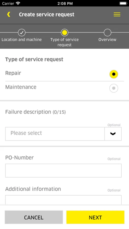 With the Kärcher Professional Service App we support commercial customers everywhere 24/7. Send us your service request quickly and easily in just three steps. Create locations & machines, describe the problem - done. Keep track of things and see the current status of your service request at any time.