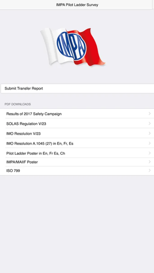 With the IMPA Pilot Ladder Survey App you'll be able to quickly access the IMPA safety campaign to submit your transfer report.