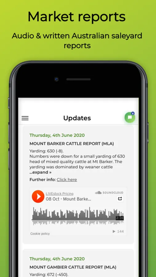 LIVEstock Pricing - sheep, cattle and goat prices, saleyard reports and market news. Designed specifically for Australian farmers, lot feeders, stock agents, traders and buyers, the app allows you to filter prices, set price alerts, save your favourite searches and sends you alerts when prices change or market reports are updated.