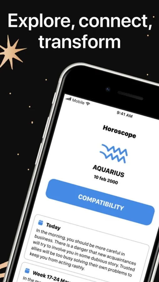 Unlock the mysteries of the stars with Talk to Star: horoscope - a personalized horoscope app that brings the cosmos to your fingertips. Our cutting-edge astrological tool uses your personal data to deliver a unique celestial roadmap to your relationships, friendships, and love life.