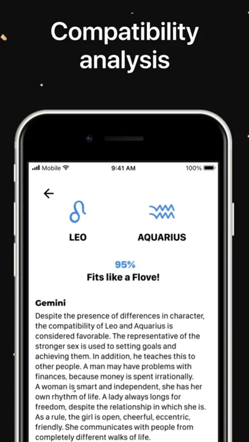 Compatibility analysis - just enter your birth details and choose the zodiac sign of your friend, partner, or potential love interest to generate an in-depth compatibility report. Discover your astrological alignment in love, friendship, and more.