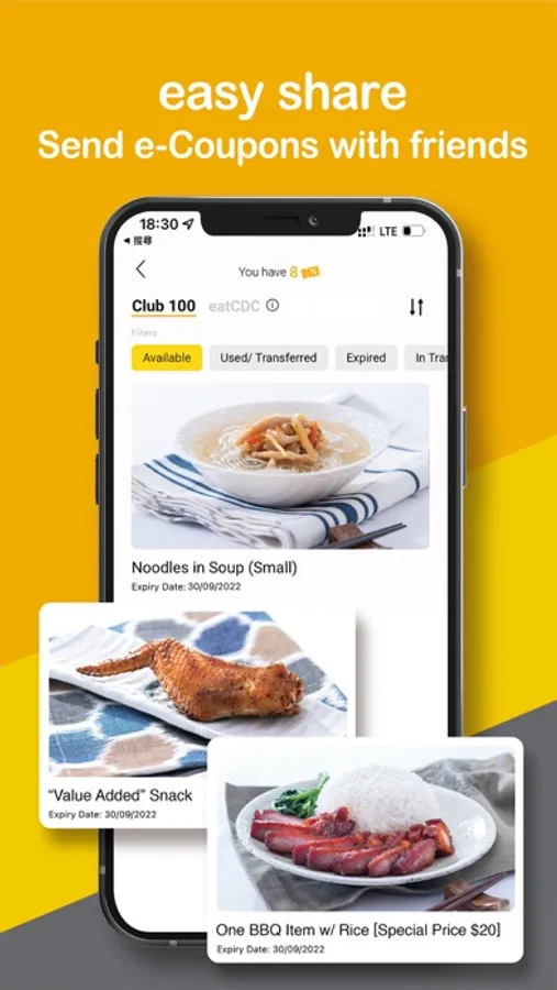 Easy Share: Share Club 100 e-Coupons with friends and view your eatCDC e-Coupons in app wallet