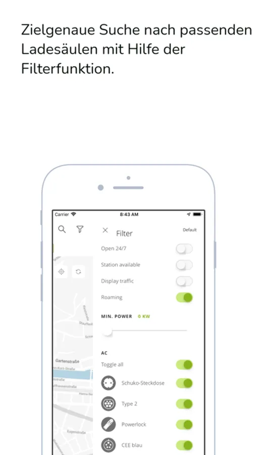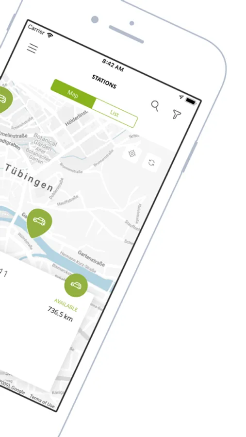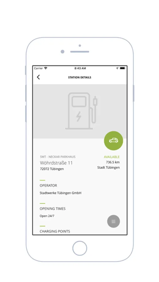 • Live-Anzeige aller verfügbaren TüStrom-Ladestationen
