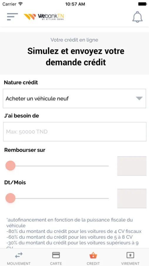 - Simuler et initier votre demande de crédit à la consommation ou une autorisation sur compte (si vous êtes client
