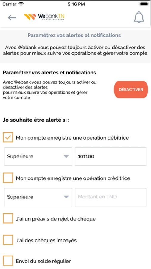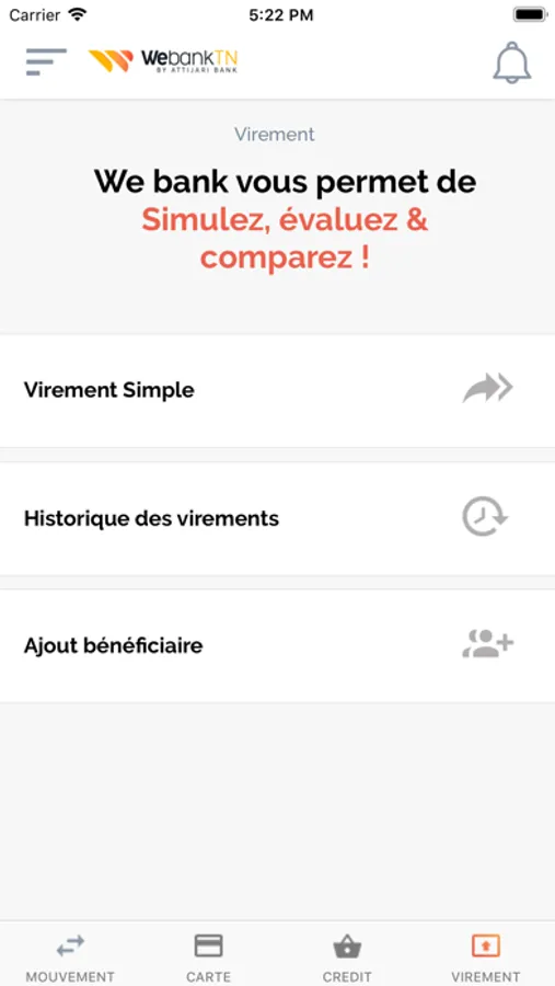 En tant que client Webank, l’application est gratuite et vous garantit un accès sécurisé à votre compte moyennant un identifiant et un mot de passe à utiliser également sur l’espace Web www.webank.com.tn