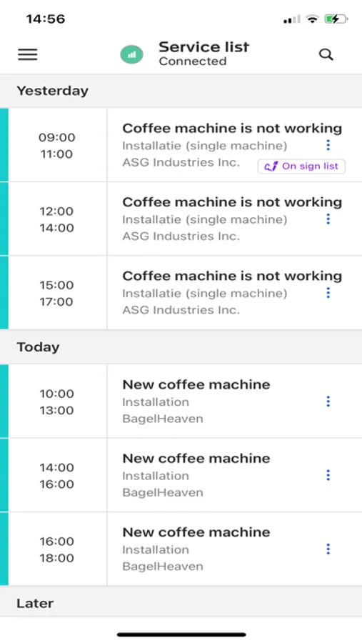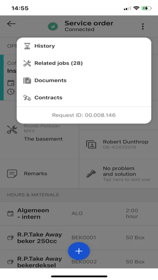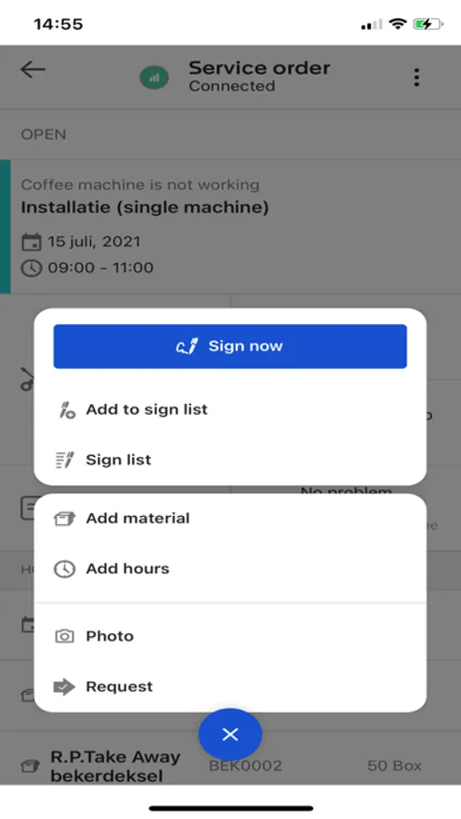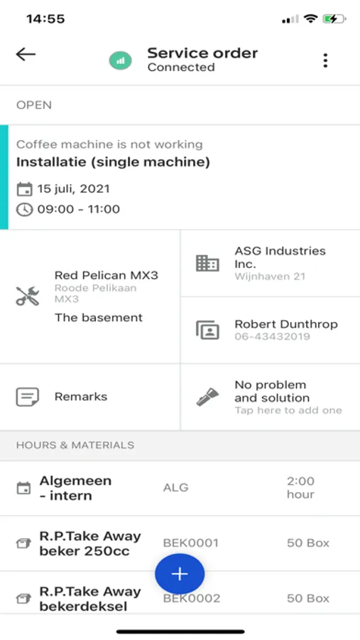 With the Exact Field Service H app, service engineers have all work order information, customer service history, documents, service parts info, manuals etc. available in the field.