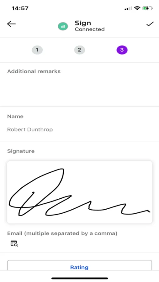 • The signed service order is ready for approval and the service activity can directly be invoiced if all service orders are signed.