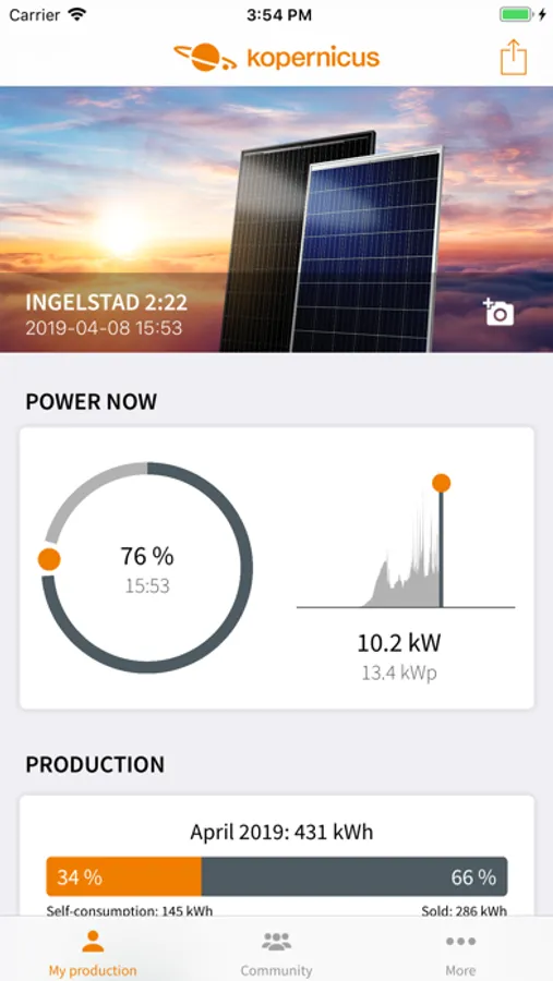 It is fun to keep track of your solar plant in our app. You can also get an overview of production during last 24 hours. Follow the numbers and how much you have saved!