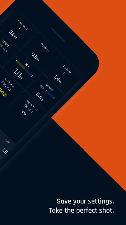 Once you select your gear from an extensive list of modern and vintage cameras, all you have to do is pick your distance, aperture, and lens from the 3 sliders. All the calculations you need to set up that perfect shot are instantly available as you slide the values. A simple and minimal interface helps you focus on fine-tuning your settings one-handed. Your thumb is in the sweet spot of the screen where you can move the sliders with precision and ease.