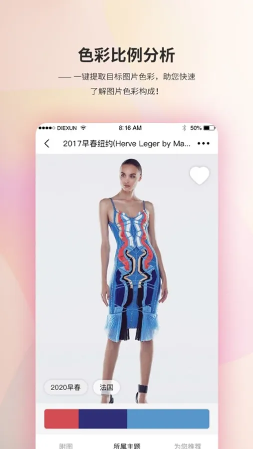 DICTON APP囊括:时尚头条、趋势资讯、蝶讯学院、时尚博主、色彩实验室等多个板块内容。