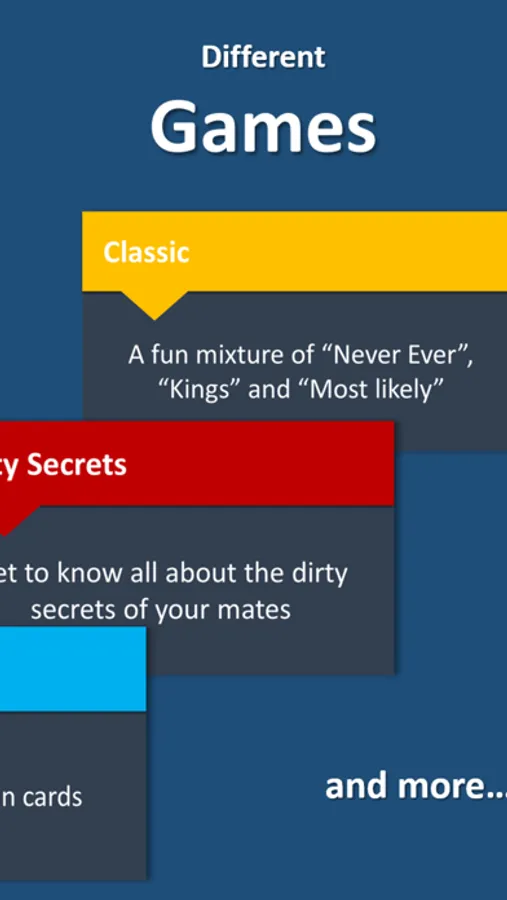 Enjoy our different party modes or create your own unique drinking game.