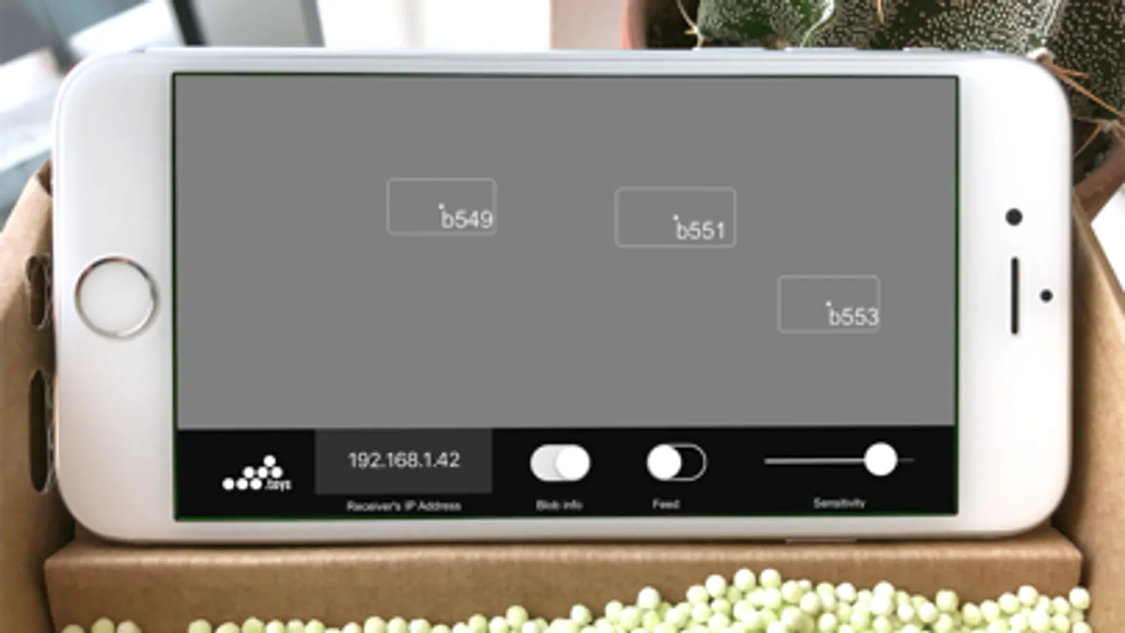 This app gives you the opportunity to experiment with the blob data extracted from its user interaction. Super easily, over the Wifi and at UDP protocol speed (that means fast!).