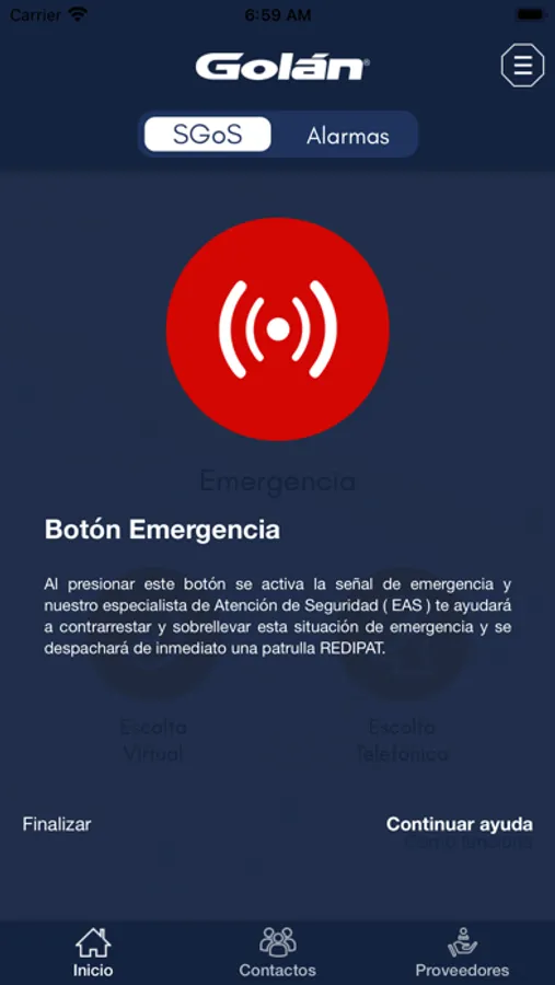 Integramos esta nueva solución pensando en el ahorro de tiempo y comodidad. El app Golan Protege es la solución que además de protegerte en donde estés, podrás también administrar, controlar tus servicios de Alarma y de facturación desde la palma de tu mano.