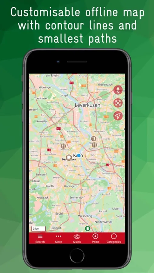 Customisable offline map from Openstreetmap with contour lines in which even the smallest paths and trails are shown.