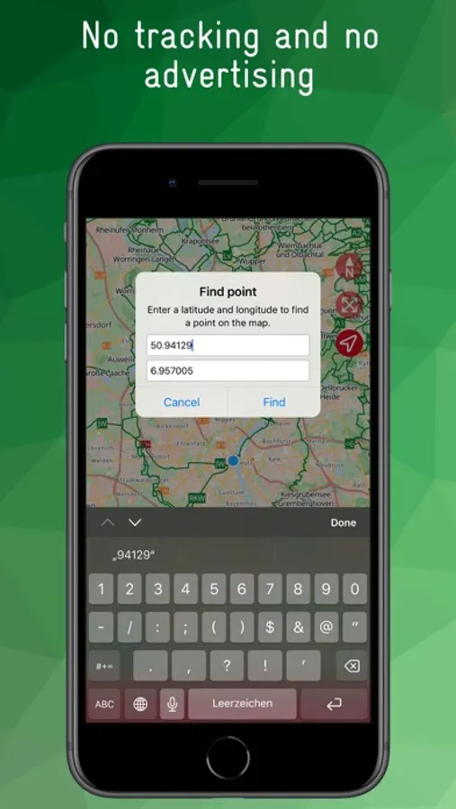 A location function shows the current position, the app is ad-free and there is no tracking.