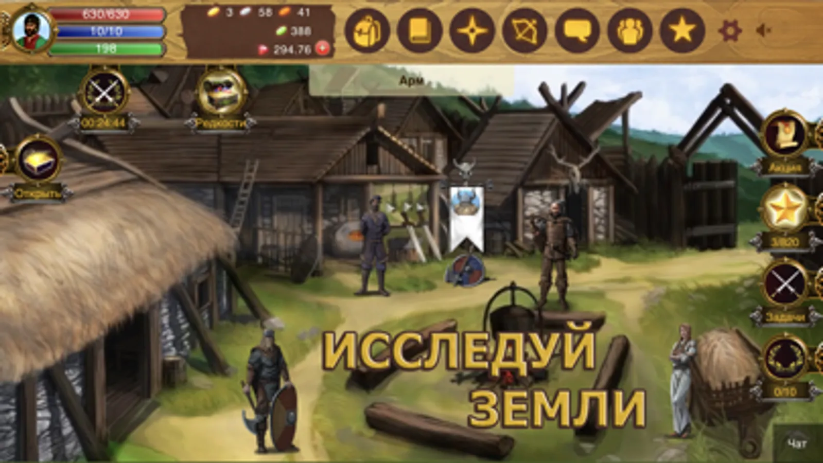 Две расы! Викинги и Славяне с различным игровым миром, квестовыми линейками и клановой системой.