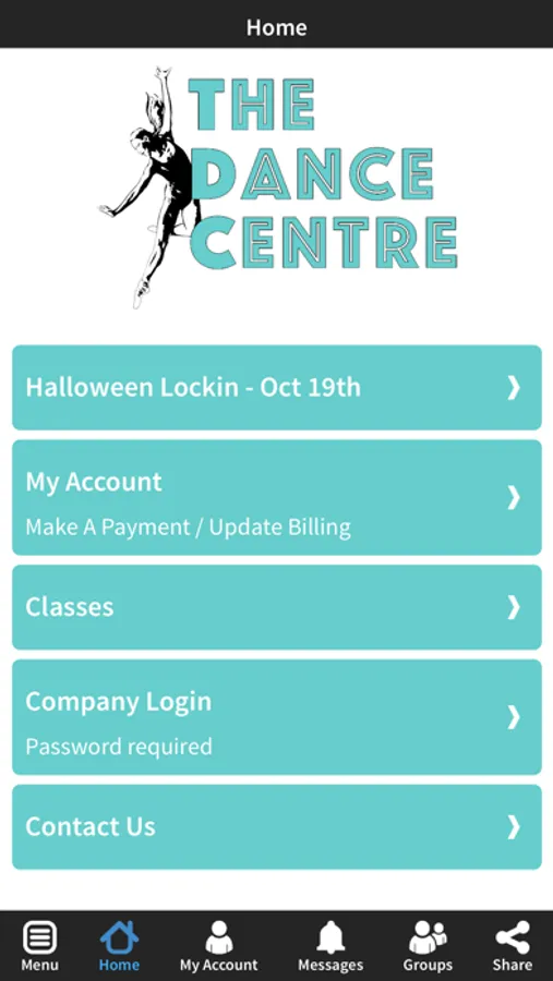 The Dance Centre app allows you to register for classes, parties and special events. The Dance Centre calendar, current events, social media links, and contact information are also easily accessible from the app.