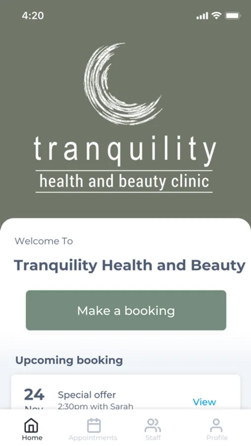 The Tranquility Health and Beauty app makes booking your appointments and managing your loyalty points even easier. You're just a few taps away from feeling good and looking great!