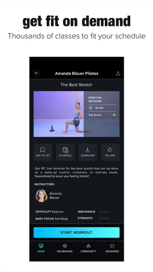 Classes for all levels and preferences: Filter thousands of workouts by difficulty, body focus, duration, equipment, and music to easily find the perfect workout for you.