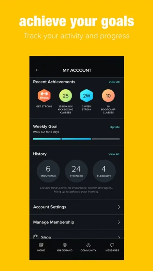 Track your progress and achievements: Set goals for a number of workouts per week and track your progress within the app. Earn badges for completing a program or challenge, or hitting a workout milestone.