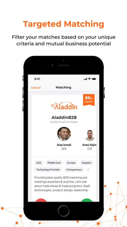 Revolutionize international trade with AladdinB2B—a cutting-edge app designed to transform the way you do business. Our mission? To simplify B2B transactions, just like shopping on Amazon! Seamlessly connect buyers and suppliers with a single tap, setting the stage for highly successful meetings and transactions. Whether you're a trade show enthusiast, government export pro, enterprise leader, or business passionate, Aladdin's exclusive network empowers you to find, meet, and conquer. Trusted by global leaders, Aladdin's smart matchmaking uses human and AI power to bring business potential to life. Experience a new era of exclusive networking, where understanding meets opportunity, meetings drive success, sourcing gets smarter, and secure transactions excel. Elevate your business game with AladdinB2B today!