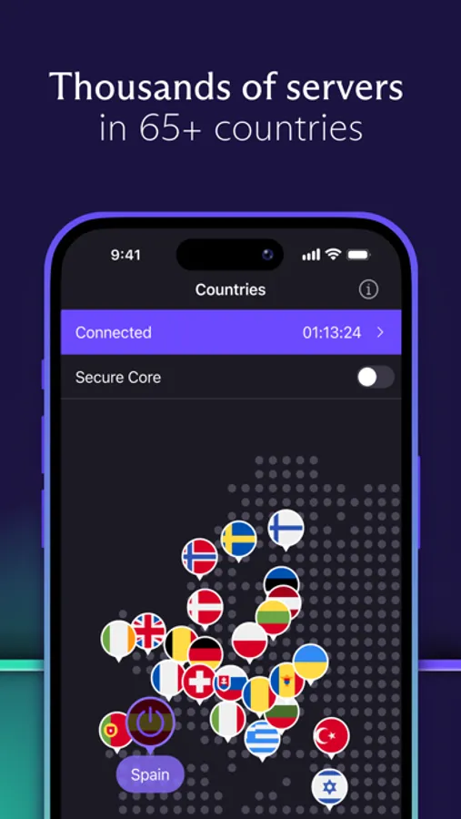 • Secure Core servers protect against network-based attacks with multi-hop VPN