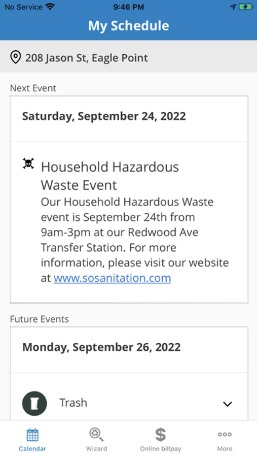 Get service reminders and alerts, pay your bill, report a problem or let the Waste Wizard tell you which cart to put that material in, all from this convenient app. Get started by downloading it today! For customers of Southern Oregon Sanitation.