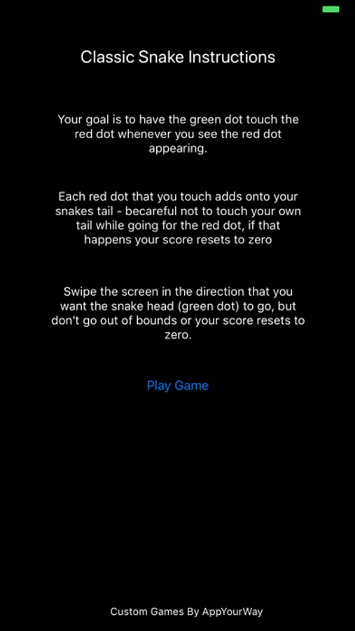 It's the classic snake game for both iPhone and Apple Watch where you swipe the screen in the direction you want the snake (green dot) to go, collecting all the red dots you can find.