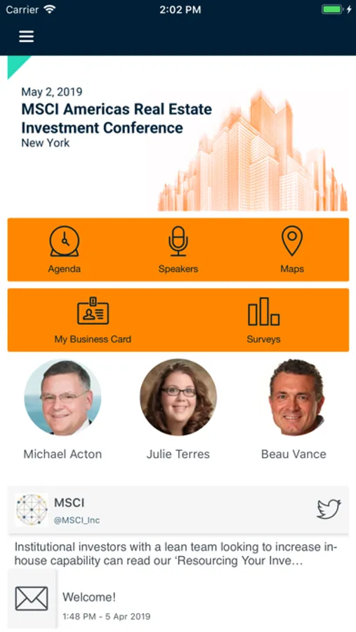 The MSCI Events app is the official app for all MSCI events. This app will allow attendees to stay up-to-date with the latest event information and receive real-time notifications. Attendees will also be able to view exhibitors and facility maps, provide live feedback and much more. This native downloadable conference app is available for free to conference attendees for iPhone, iPod Touch and iPad.