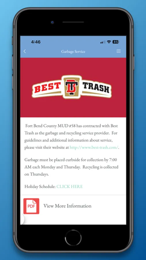 Download this app to stay connected with Fort Bend County MUD #58! At Fort Bend County MUD No. 58 we are devoted to helping and serving. We understand you rely on this app for accurate information, and it is our pledge to deliver you relevant, correct, and timely content. This app has features such as.