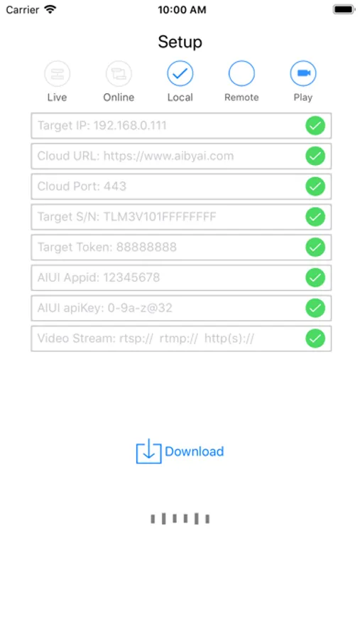 You can make your own control web page by VN software. Then download the control web page project to your app. Your app can use AIUI functions to control your home, your building and etc. To enter into setup page you must press more than three times at the app starting period, at that time there is a gray shade on the screen. In the setup page you can config your controller IP, the AIUI Api account and some other parameters. This app need to be used together with the target controller. User can save customized data to iCloud.