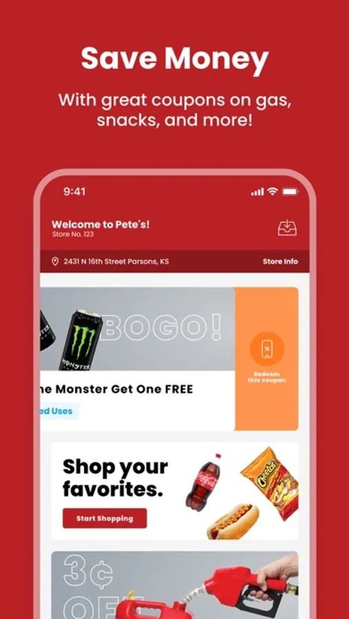 Save money at Pete's with great coupons on gas, snacks, and more! Simply tap the orange redeem button and show your phone at purchase to redeem your coupons.