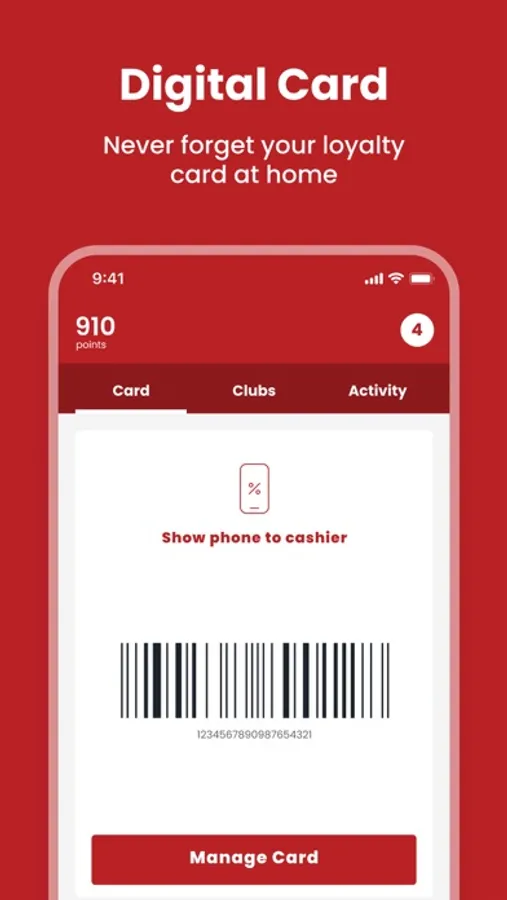 Easily connect your KickBack Card and earn points that you can spend like cash! Keep track of your points and clubs right here on the app.